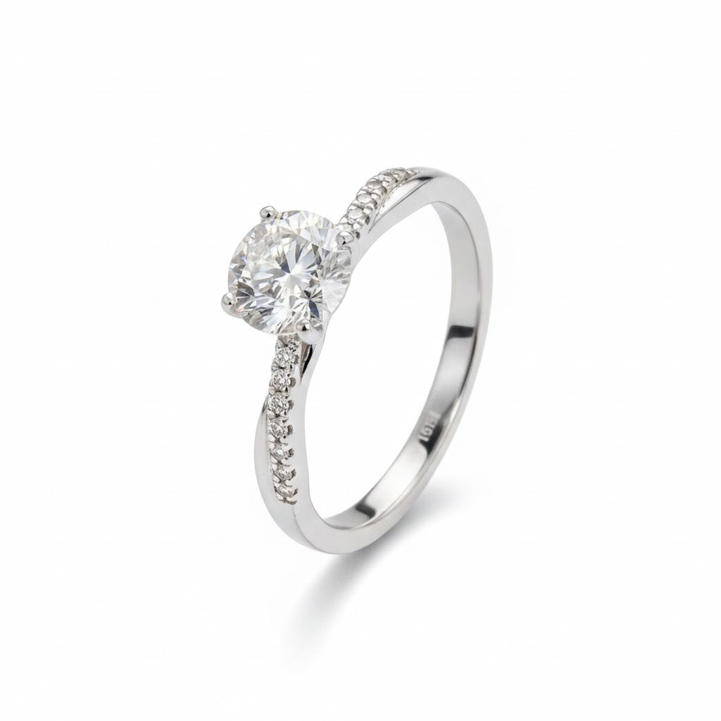 Elle est ornée d'une pierre centrale en zircon cubique taillée avec précision pour imiter la brillance d’un diamant, entourée de petits cristaux qui apportent une touche de luxe supplémentaire. Son design torsadé et délicat épouse parfaitement le doigt, ajoutant une note féminine et romantique.